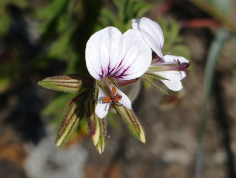 An der Straße entdecken wir ein nicht eingezäuntes Geländestück, das recht naturnah erscheint. Wir finden neben verschiedenen Sukkulenten mannshohe Pelargonien in Blüte und viel interessantes Kleinzeug. Eine Anwohnerin reklamiert, es sei ihr Land und wir sollten doch verschwinden. Dieser Aufforderung kamen wir schließlich nach, wenn auch betont langsam.