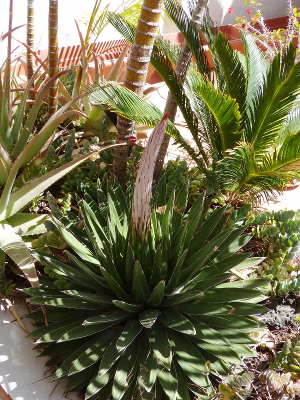 Vor ca. 20 Jahren pflanzte ich in einem Beet im Patio eine kleine Agave, seit April 2020 schob die Pflanze nach und nach