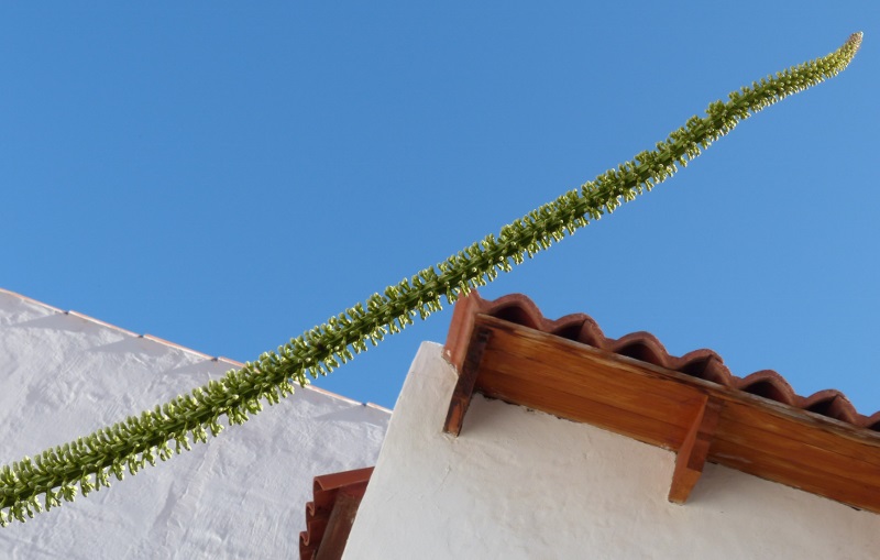 Vor ca. 20 Jahren pflanzte ich in einem Beet im Patio eine kleine Agave, seit April 2020 schob die Pflanze nach und nach
