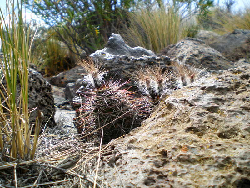 Es gibt bei vielen Reisen immer wieder ganz besondere Momente. Manche sind sogar besonders nachhaltig, weil sie beispielsweise zu einer Publikation führen. Einen solchen Moment durften meine Frau und ich am 30. Dezember 2007 zwischen 10:00 und 11:00 Uhr westlich von Zapala in der Provinz Neuquen erleben. In der Ferne konnte man einen Canyon sehen, den ich gerne filmen wollte. Also sagte ich zu meiner Frau: "Du kannst gerne im Auto bleiben, hier ist bestimmt kein Kaktus - nur langweilige Lavafelsen". Also machte ich mich auf, den Canyon zu filmen.