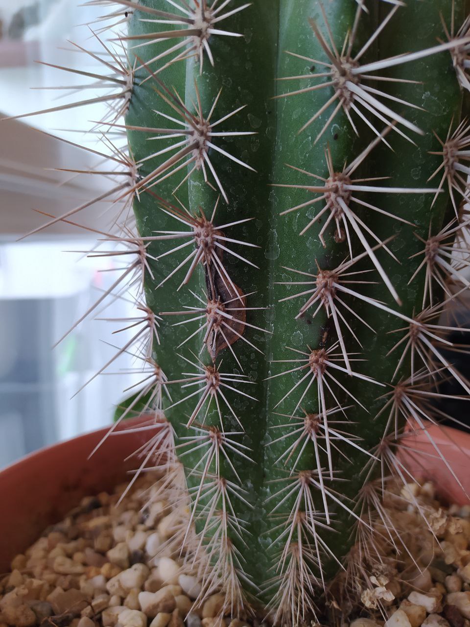 Eine andere Frage habe ich zu der kleinen braunen Stelle an der Pflanze (siehe ersten zwei Fotos). Kakteen haben natürlich hier und da mal eine brauen trockene Stelle und das ist normal und nicht schlimm. Oder ist das vielleicht irgendeine Krankheit? Sollte ich die Stelle irgendwie behandeln, damit sie nicht größer wird? Aber diese Frage stelle ich wohl besser in der Rubrik "Krankheiten".