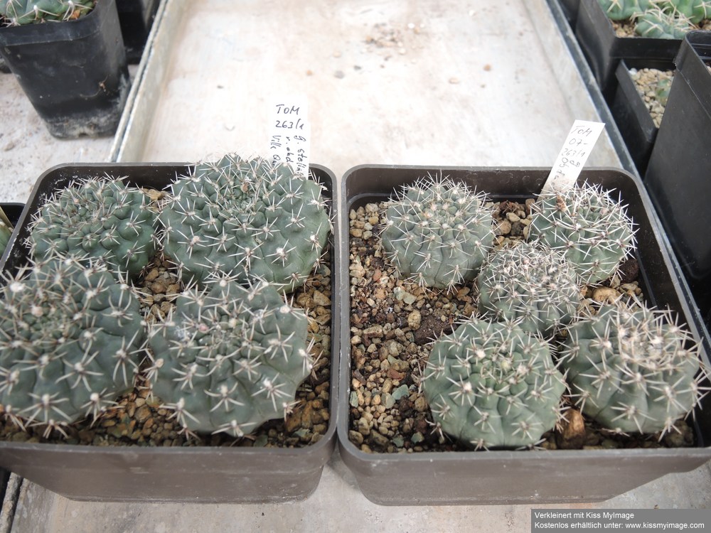 Gymnocalycium VoS 10-681 Gymnocalycium quehlianum [Aussaat 2010] und VoS 10-632 Gymnocalycium quehlianum var. kleinianum [Aussaat 2010] ist auch in dieser Saison wieder präsent.