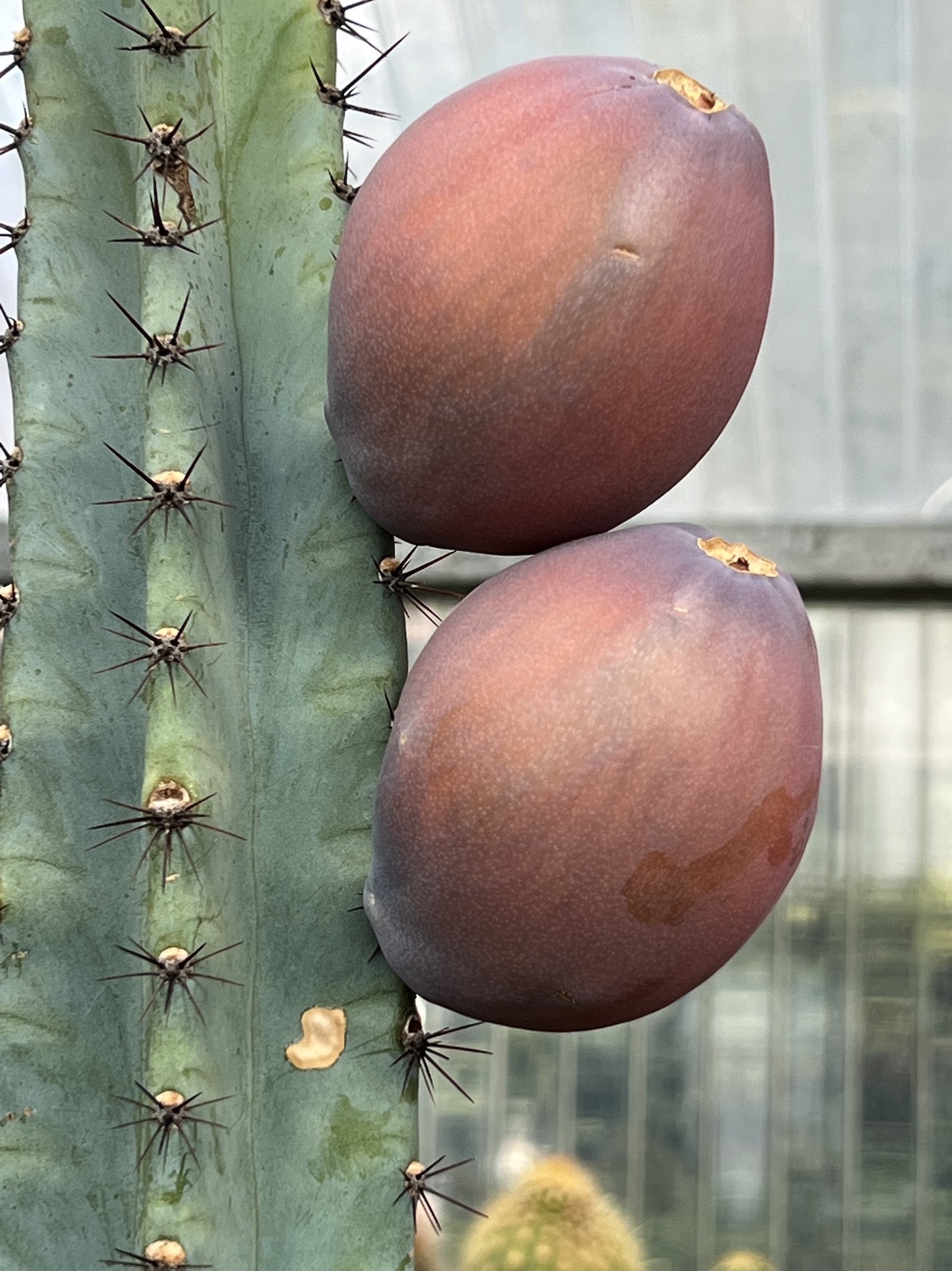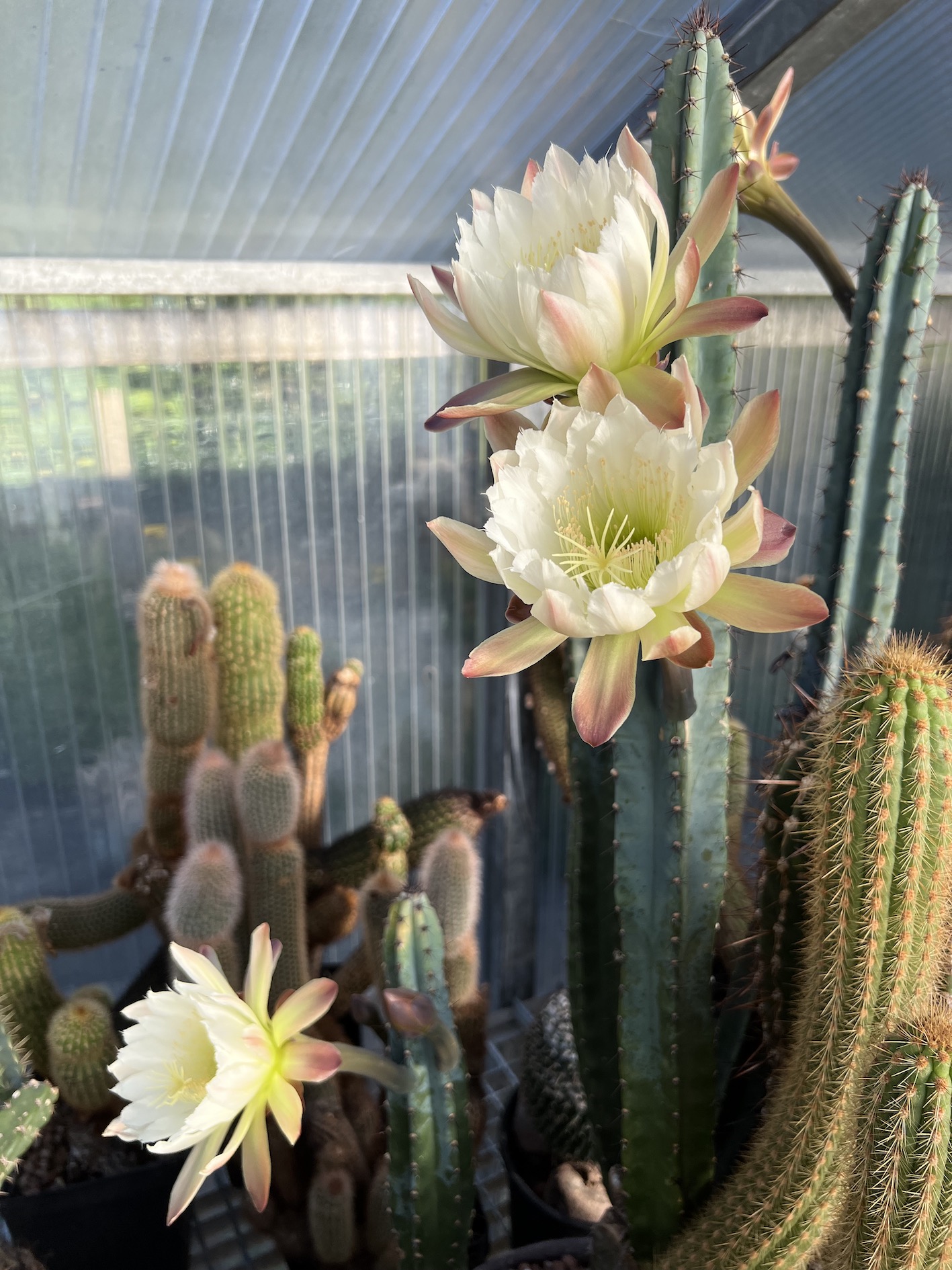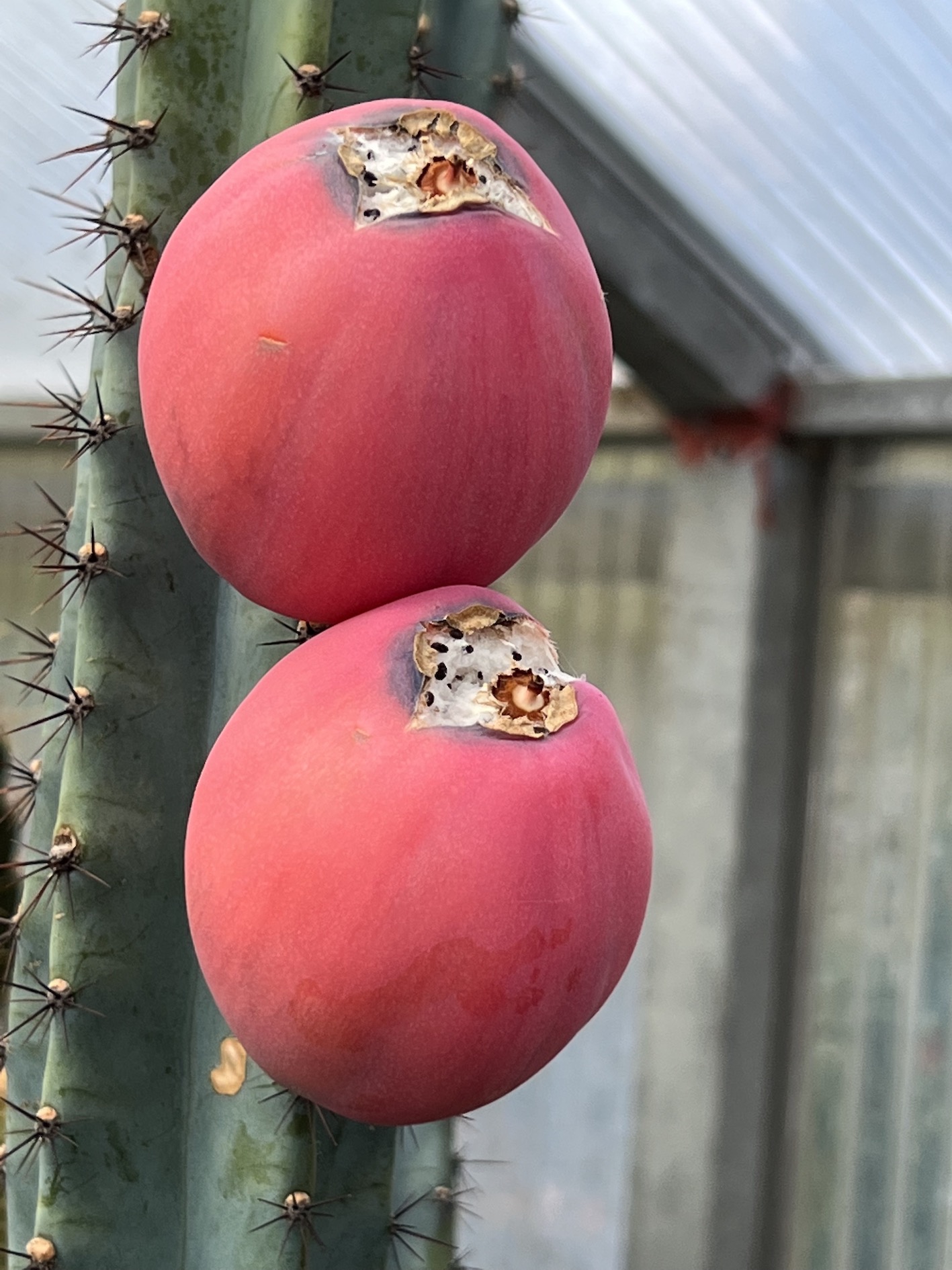 So sind die Blüten von diesem blauen Cereus. In diesem Jahr habe ich einige riesige Früchte dran