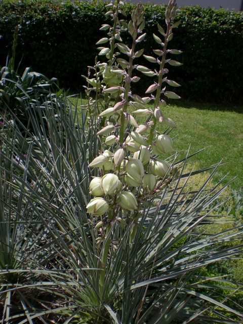auf meiner Gartenterasse in Norddeutschland. Diese Pflanzen wuchsen in den letzten Jahren sehr gut mit vielen Sprossen, und seit ca. fünf Jahren blühen dies Pflanzen im Juni ( Foto vom 10.6.12), Yucca glauca ist hier absolut winterhart auch bei naßkaltem Schmuddelwetter im Winter.