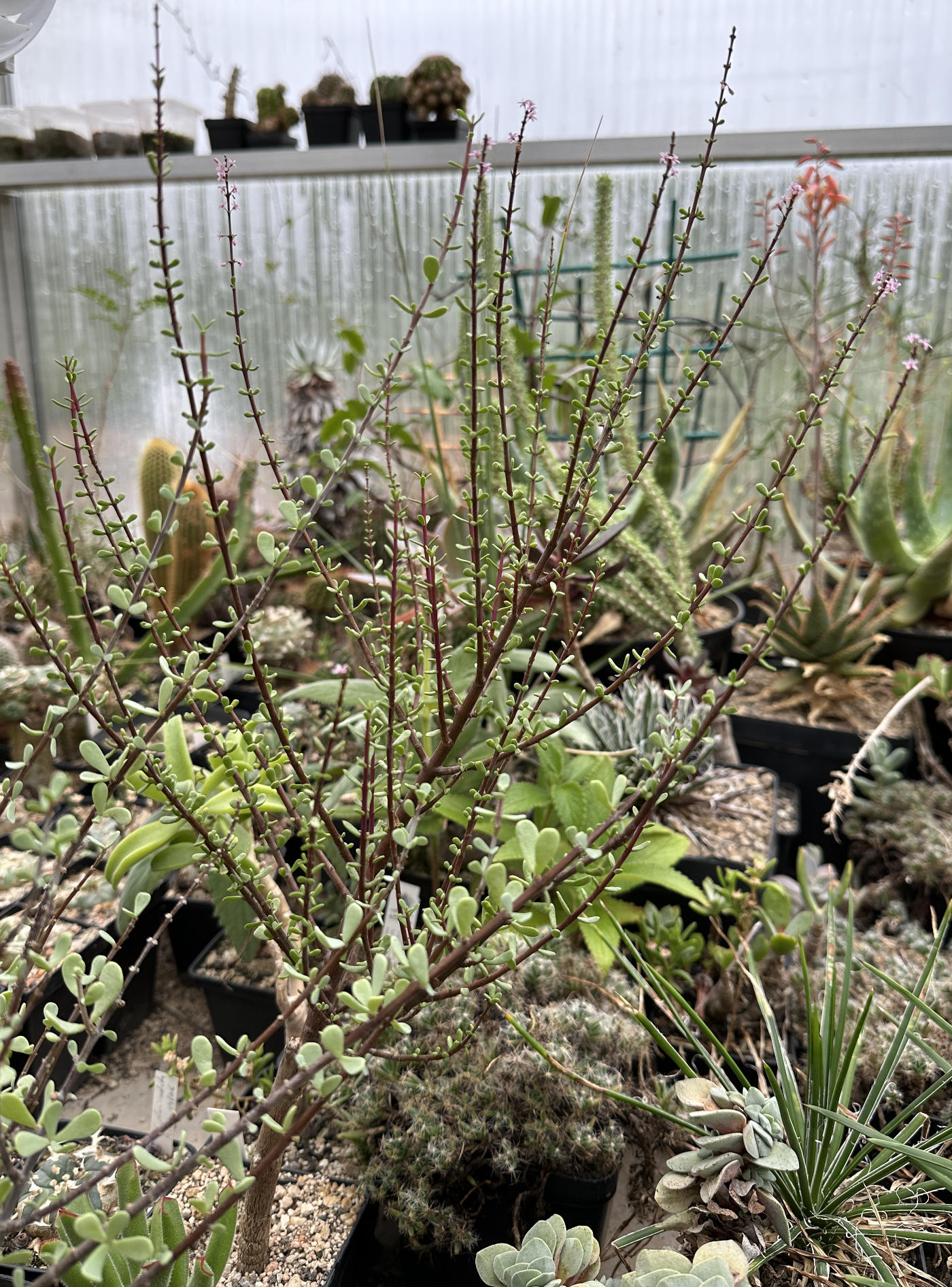 bei der Pflanze handelt es sich um strauchartig wachsende, bis 2 Meter hoch werdende Sukkulenten aus Namibia. Bei mir im Gewächshaus hat nun wieder eine geblüht. Die Blüten sind winzig, was man ja aus der Gattung kennt, fallen aber durch die Farbe deutlich mehr auf, als die von Ceraria pygmaea.