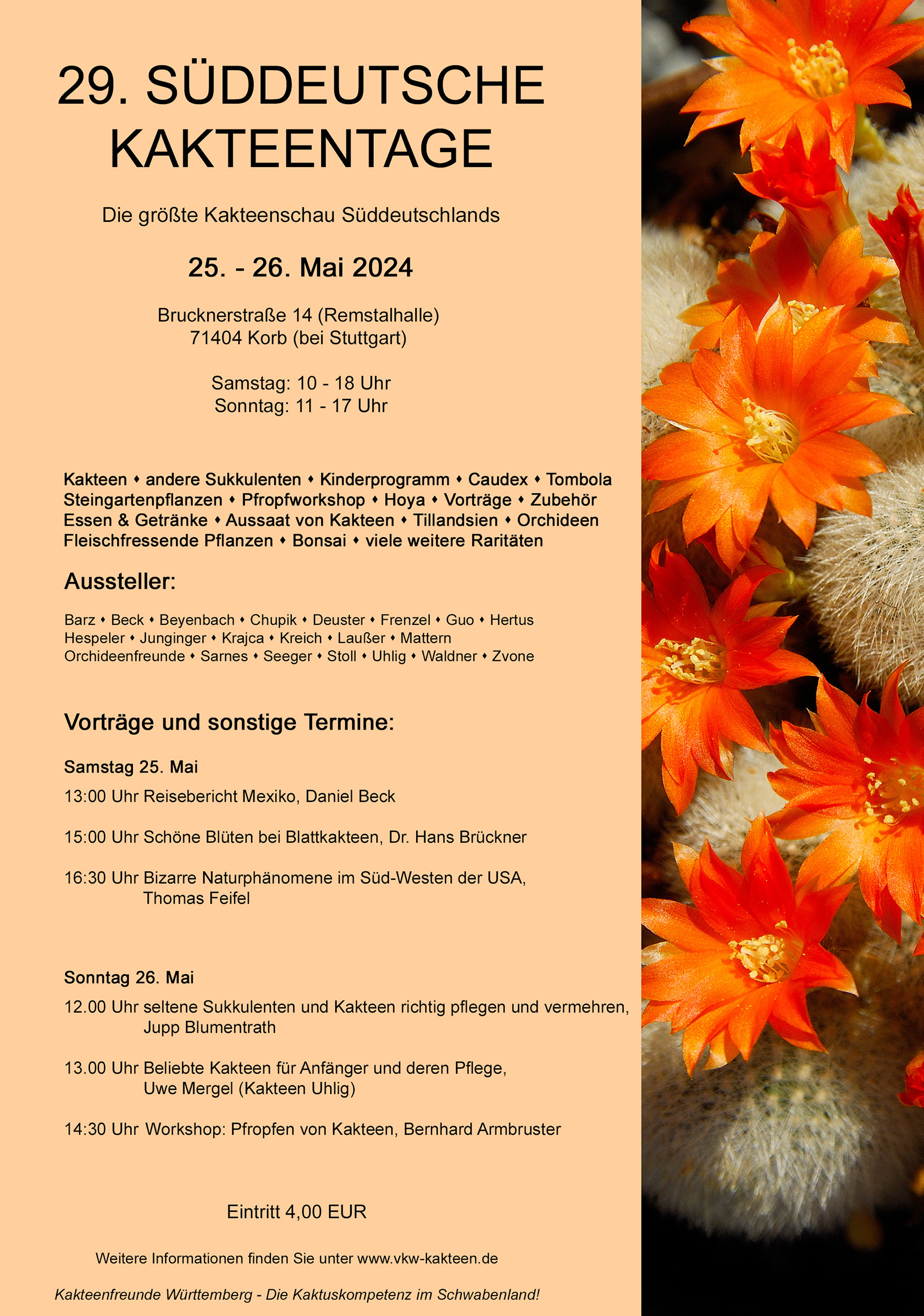 29. Süddeutsche Kakteentage am 25. und 26. Mai 2024