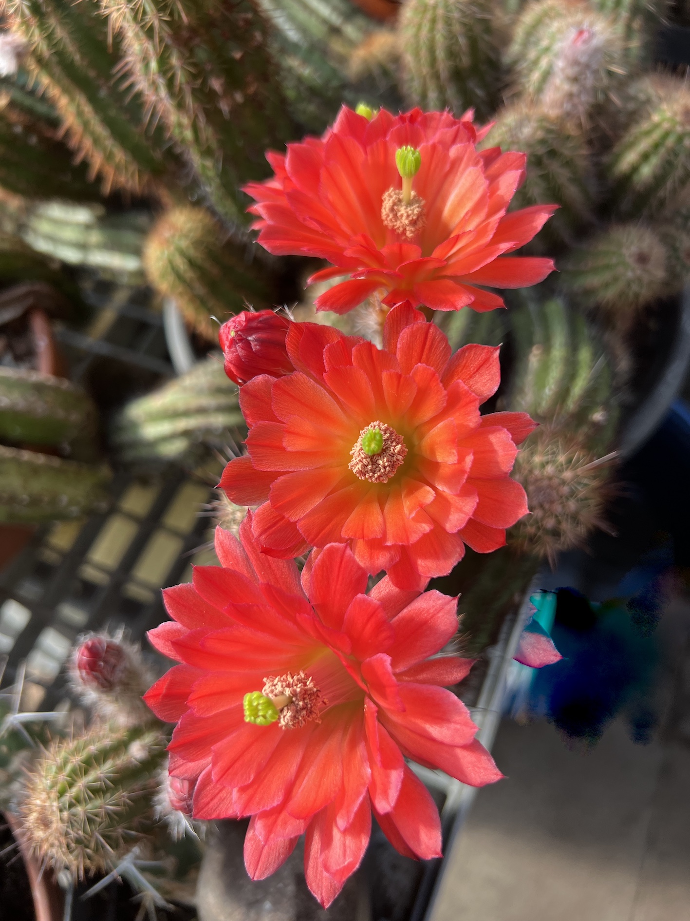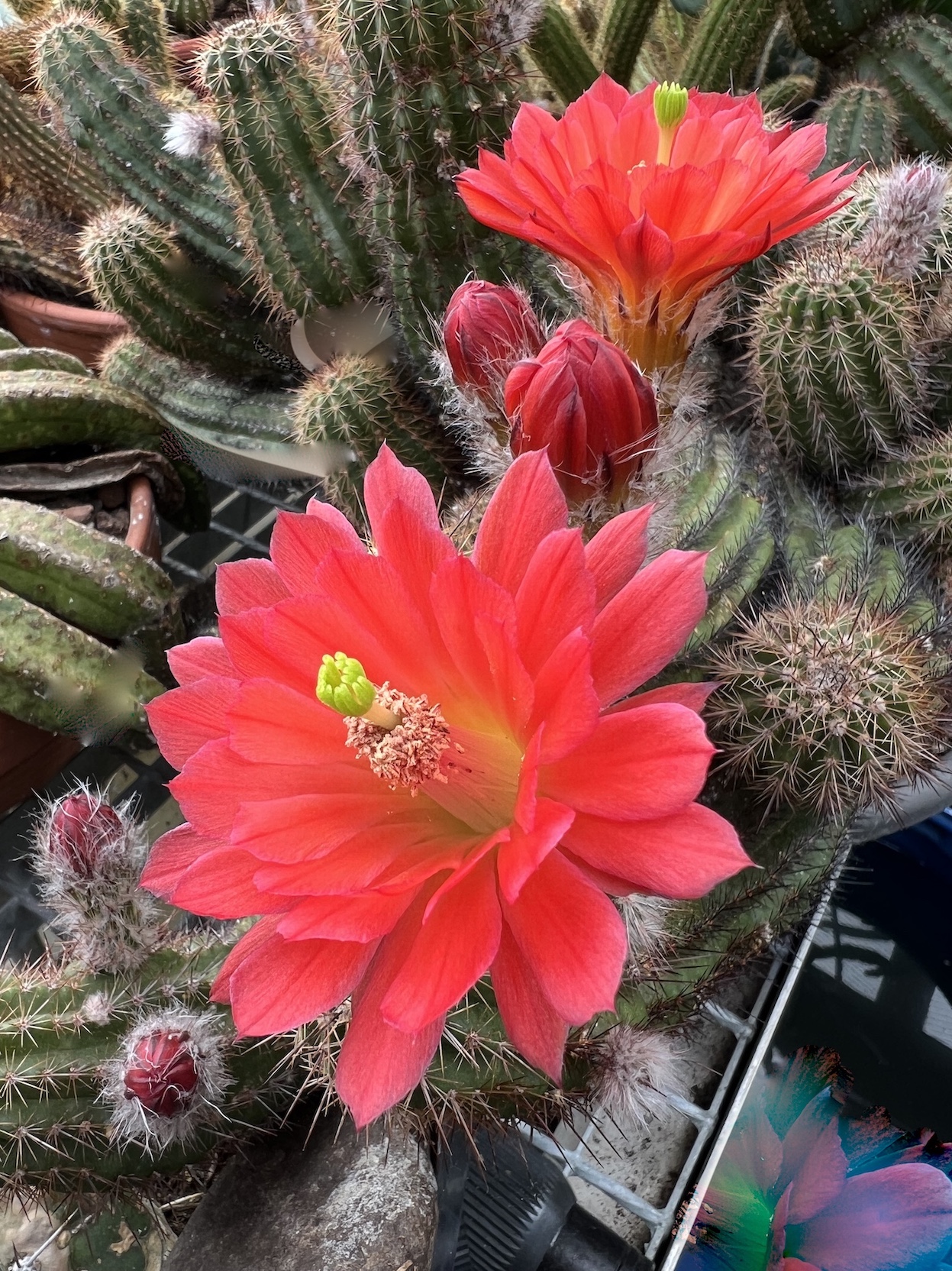 Auch heute wieder neue Blüten der Echinocereen.