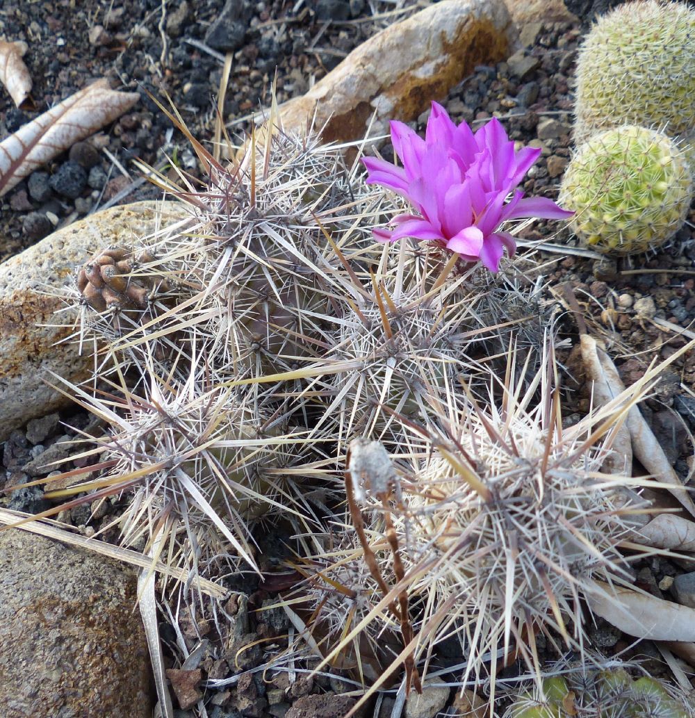 Jetzt blüht bei mir im Garten auf Gran Canaria dieser Echinocereus, Schild vom Wind verweht.