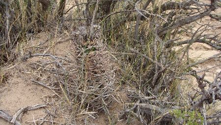 Unser "Jagdinstinkt" war geweckt und wir suchten weiter. Wir hatten Glück und fanden wieder einen Pterocactus - aber es war kein araucanus sondern eindeutig ein fischeri mit hellen, langen Papierdornen.