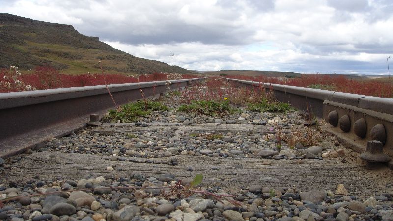 Der Pterocactus australis von gestern war zwar unser bisher am weitesten im Süden gefundener Kaktus, aber es gibt durchaus südlichere Funde. In der Literatur gibt es die Angabe von Castellanos und Lelong über einen Austrocactus (Santa Cruz, Rio Gallegos). Diesen haben wir in Rio Gallegos nicht gefunden. Deshalb beschlossen wir, heute die Strecke entlang der Eisenbahnlinie, die dem Rio Gallegos folgt und der alten Ruta 40, die einen ähnlichen Verlauf hat einzuschlagen.