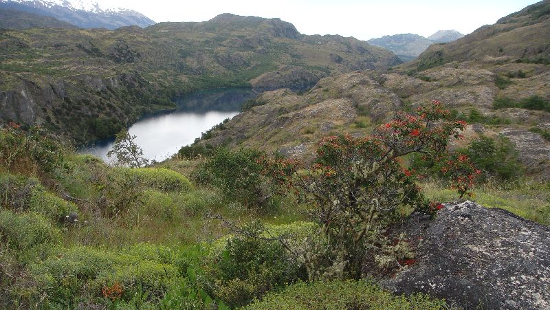 Wir machten uns morgens auf den Weg zum Eingang und begannen den Fußmarsch über Berg und Tal auf einem erkennbaren aber abenteuerlichen Pfad. Endstation war ein Rastplatz am Seeufer. Nach zweieinhalb Stunden hatten wir diesen erreicht und dabei kein einziges Huemul gesichtet. Unsere Hoffnung, eines der Tiere zu sehen war auf dem Nullpunkt. Außerdem hatte uns der Marsch ganz schön geschafft, weill wir uns auch noch ständigen Attacken von Bremsen ausgesetzt sahen.