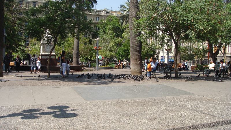 Wie CABAC ja so nett vorgeschlagen hat, wollten wir am Sonntag Mittag im Mercado Central Mariscos essen gehen und sind mit dem Taxi vom Hotel ins Zentrum gefahren. Die erste Überraschung war, dass die Einkaufsstraßen, die sonst immer - auch sonntags - sehr belebt sind äußerst ruhig waren.