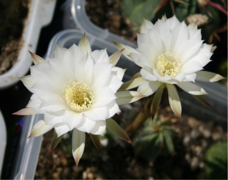 Bild 3 und 4 müßte Echinopsis subdenudata sein.Bei E.eyriesii wird die Blüte viel länger (habe gerade Samen geerntet ).
