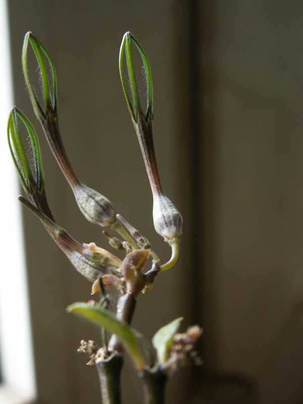 Bildet Caudex -12 cm .Drahtige dünne Stiele mit kleinen etwas sukulenten blättern.