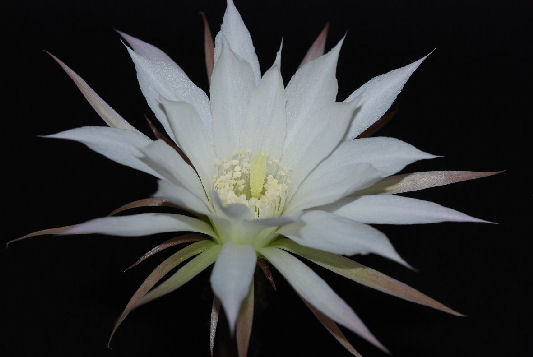 gestern Abend öffnete erstmals eine Echinopsis (ich gehe davon aus, dass es eine ist) ihre Blüte bei mir. Nun, einfach weiß, nichts weltbewegendes also. Kann trotzdem irgendjemand eine Vermutung äußern, welche Art es sein könnte?