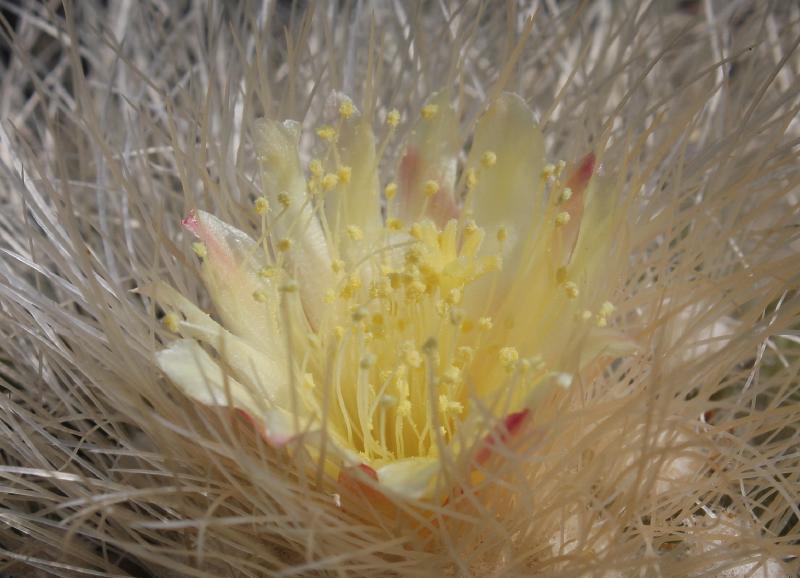 Minni-Blüte - Aztekium ritteri, starke Macroaufnahme, sonst garnicht erkennbar...die erste Blüte (die nächsten werden sicher größer