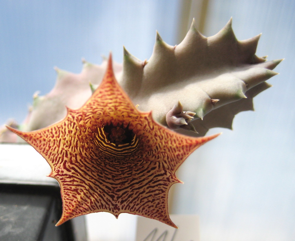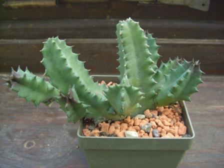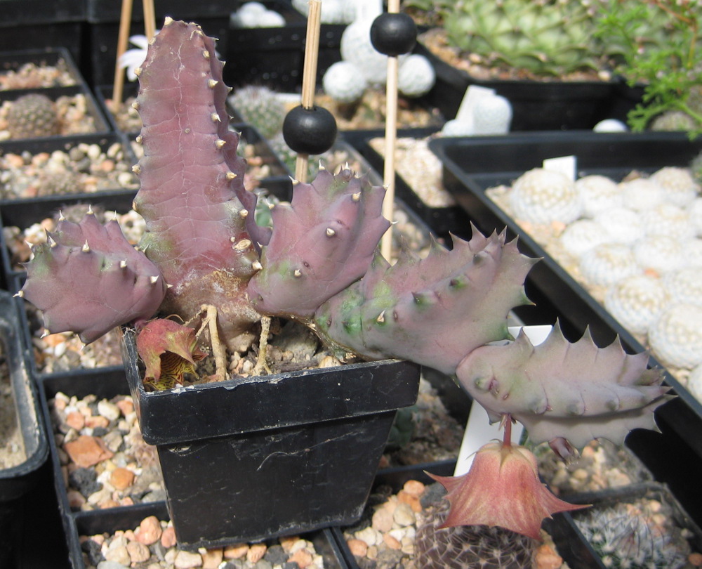 So sieht die Pflanze heut (Sept.2010) aus. Sie hat sich prächtig entwickelt und bringt auch eine Blütenknospe (rechts unten am Topfrand).