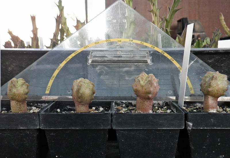 Aber ich überlege, sie zu den restlichen Sämlingen (Hauptsächlich Hoodias und ein Cynanchum) ins Freie in den Schatten zu stellen. Den anderen tats gut..