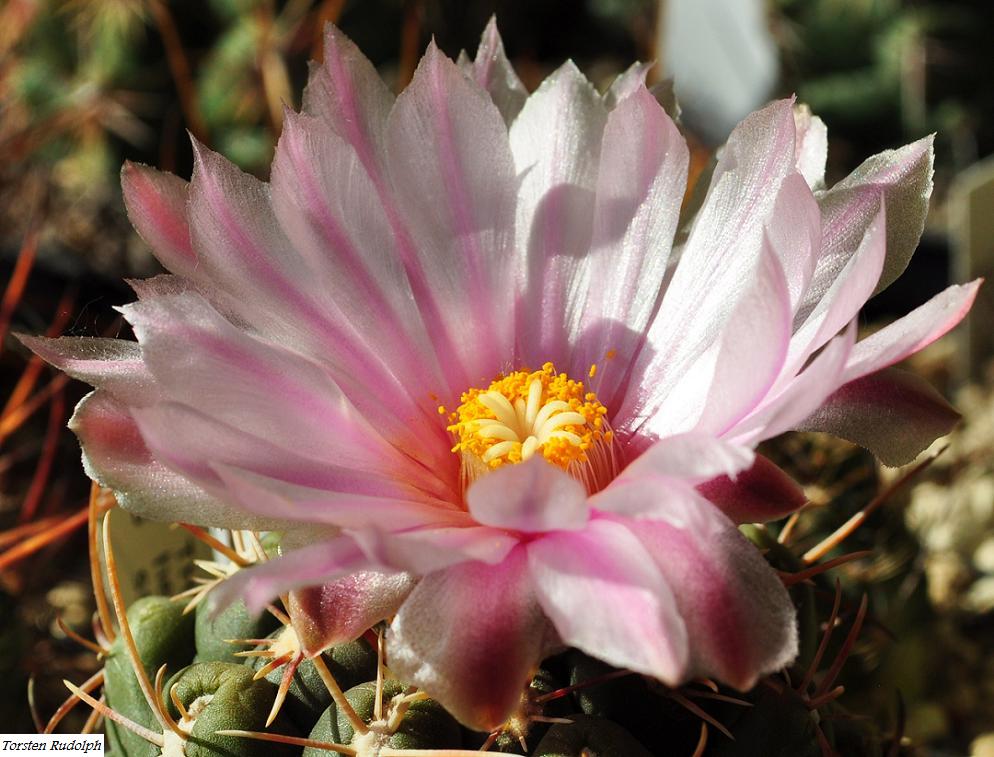 Mein 1996, als Thelocactus bicolor subsp.. schwarzii gekaufter "Dauerblüher" hat kürzlich die ersten Blüten dieser Saison präsentiert.