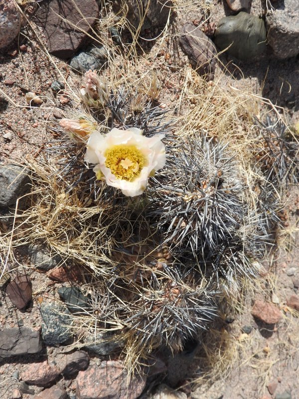 Zunächst durchfährt man ein sehr breites Tal. Hier haben wir einige der Schotterflächen, welche sich aus den südlich gelegenen Hängen ergießen, näher in Augenschein genommen. Fasziniert haben uns hier die teils extrem bedornten Exemplare von E.leucantha. Die Art hat ja ein riesiges Verbreitungsgebiet und ist nicht selten. Hier am Paso haben wir aber die schönsten Exemplare gesehen.