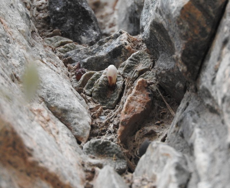 Bei den Blossfeldien haben wir mit Sicherheit nichts übersehen, da wir akribisch jede Ritze (mehrfach) sondiert haben. Die einzigen noch vorhandenen Pflanzen waren in etwa 3m Höhe, also ohne Hilfsmittel nicht zu erreichen. Aber die Felsen sind hoch, gut möglich, dass in höheren Lagen weitere Pflanzen existieren. Hier am Parkplatz der Thermen sind einfach zu viele Menschen.