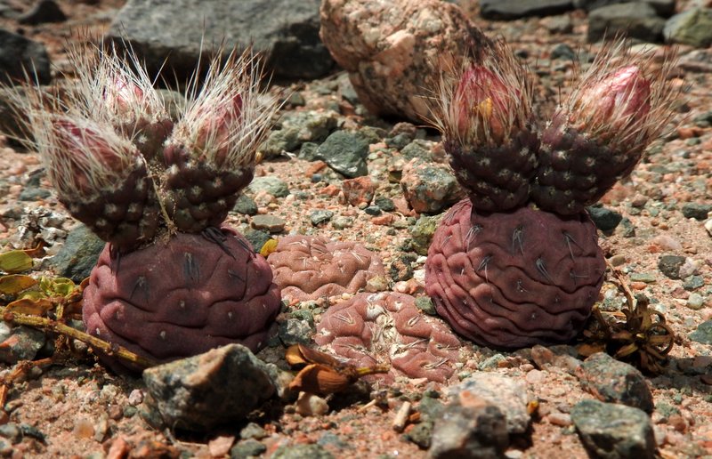 Eher ein Zufallsfund gab es dann mit diesen Winzlingen. Es sind Pterocacteen - wahrscheinlich eine zwar längst bekannte, aber bislang unbeschrieben Art - mit Ähnlichkeit zu P.megliolii.