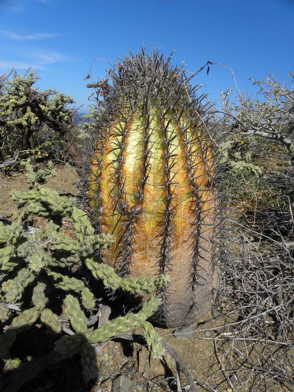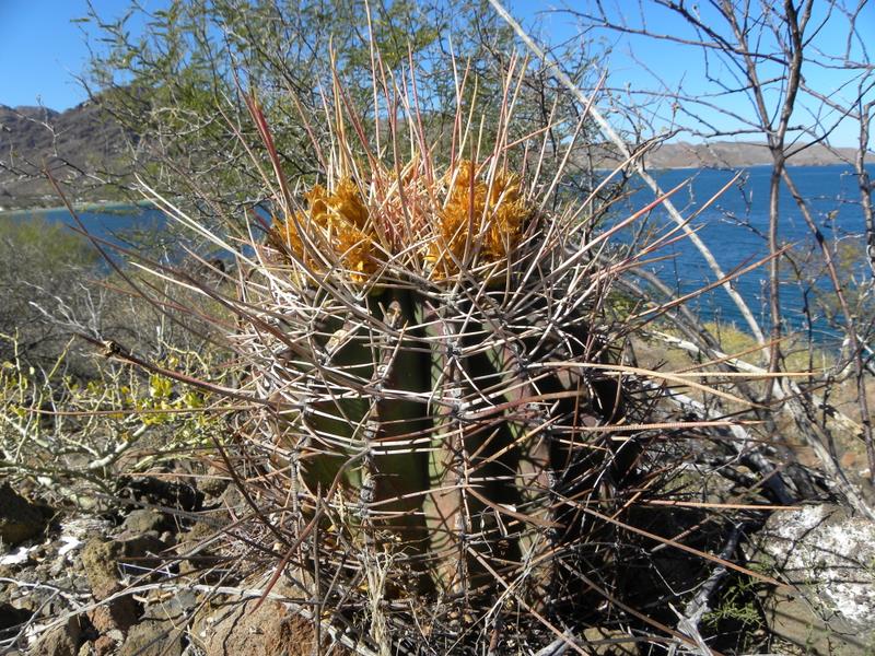 Ich denke schon, dass es F. santa-maria ist, auch wenn in dieser Region ebenfalls Feroc. peninsulae var. townsendianus vorkommen kann. Das "Dornenbild" (die nach oben gerichtete Mitteldornen) passt jedenfalls zu F. santa-maria. Eine eindeutige Zuordnung könnte über Samen erfolgen.