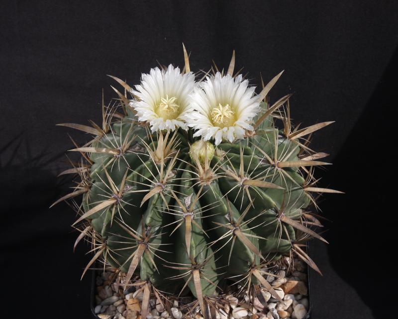 zum Vergleichen hier auch von mir ein heutiges Foto vom weißblühenden F. latispinus ssp. flavispinus. Meiner hat in der Tat schöne breite und krumme Mitteldornen. Schade, daß die Pflanzen so weit auseinander leben, sonst könnte man eine Bestäubung vornehmen.