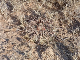 ja, ich kann mich erinnern an 1979 oder 80 - 81, das war auf einer meiner ersten selbst ausgearbeiteten Reisen nach Mexico. Da gab es die Autopista von Saltillo nach Torreon noch nicht und die Mex 40 war noch eine normale Landstraße. Vor dem Cerro Bola gab es / gibt es auf der nördlichen Straßenseite eine niedrige Felsformation in der Lehmebene. Hier fielen mir damals schon die irrsinnig lang bedornten, für mich damals einfach irgend ein Ferocactus, auf. Heute, beziehungsweise seit einigen Jahren weiß ich, daß es auch Homalocephala texensis ist. Vor einigen Jahren sah ich mal eine Pflanze auch weiter westlich hinter dem Abzweig La Cuchilla mit ausgeräuberten alten Früchten und fand ein einziges Samenkorn, was zu Hause natürlich nicht keimte. Soviel zu Cerro Bola.