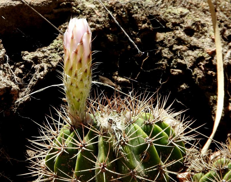 Immer wieder gab es Exemplare von Echinopsis candicans, die hier aber eher kleine Gruppen bildeten - leider ohne Blüten. Etwas westlicher vom See, in einem Bachtal fanden wir eine Straßenböschung mit blühenden Acanthocalycium klimpelianum peitscherianum, die eher flachkugelige Variante - aber vielleicht sollten wir diese auch einfach nur mit A.spiniflorum bezeichnen. Die Unterschiede der einzelnen Populationen sind fließend. Ein einziges Exemplar von Cereus aethiops erspähten wir zufällig am Wegesrand. Am Seeufer gibt es vereinzelt blühende Notocactus submammulosus. Hier scheint das Nährstoffangebot in reinem Granitgrus besonders gering zu sein. Dieses Problem werde ich im nächsten Beitrag, wo es um Gymnocalycium capillaense gehen wird, nochmals darlegen. Fortsetzung folgt...