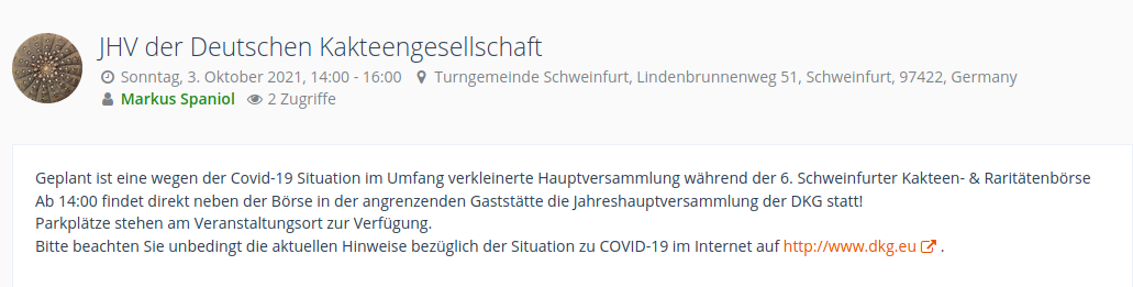 Kürzlich wurden ja zwei neue Veranstaltungen der DKG bekanntgegeben und automatisch in meinen Forumskalender übernommen.