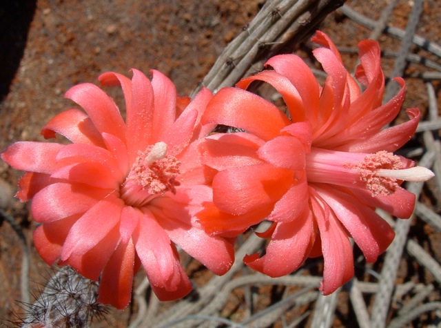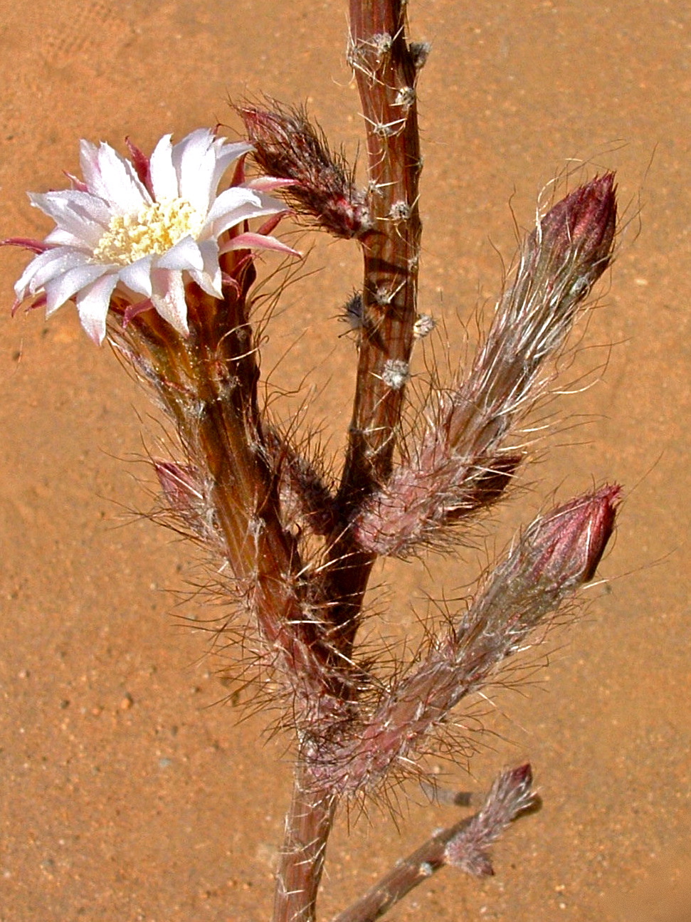 der sieht ja so garnicht nach Peniocereus aus, hat aber sehr interessante Blüten. Hat der auch die berühmte Knolle im Boden? Ich hab auf einer meiner Reisen zusammen mit meinen Begleitern mal im Süden von Oaxaca, wo das Land schmal wird, am Istmus, einen bleistiftstarken Cereus im Buschland gefunden. Mehr durch Zufall, weil starker Winterregen die Oberseite der Knolle freigelegt hatte und neue Triebe aus der Knolle kamen. Diese ersetzten die abgebrochenen alten. Nach längerem Suchen fanden wir auch unversehrte Pflanzen, die irrsinnig schwer zu finden waren, da die Triebe, auch die frischen, täuschend den Zweigen der Büsche glichen. Dieser Cereus sollte Neoevansia sein, auch mit einer kiloschweren dicken Rübe in der Erde, eingeklemmt zwischen Felssteinen im harten Lehm. Nur Blüten haben wir keine gesehen.