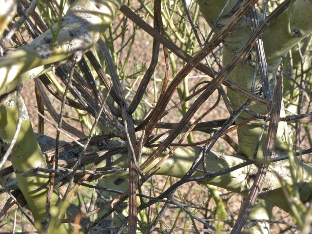 All das wird durch diesen dünnen 'Stamm' an der Basis der Fouquieria versorgt