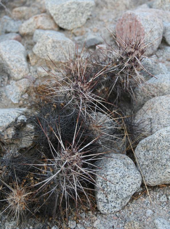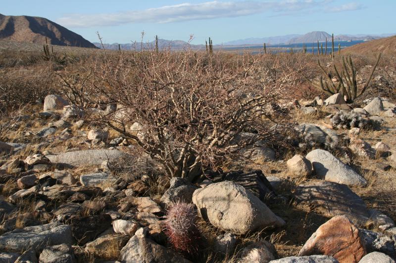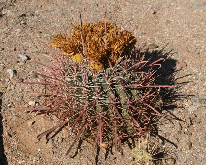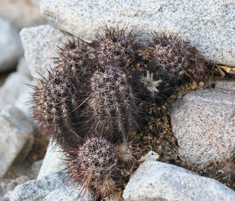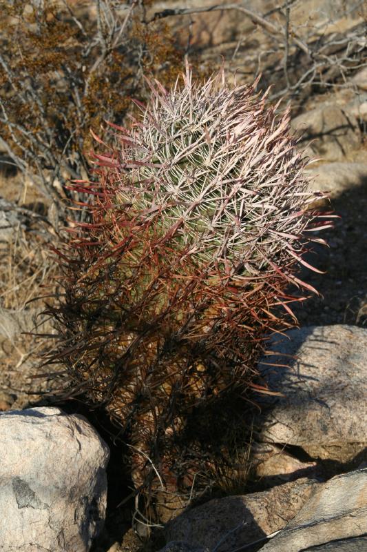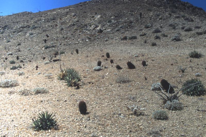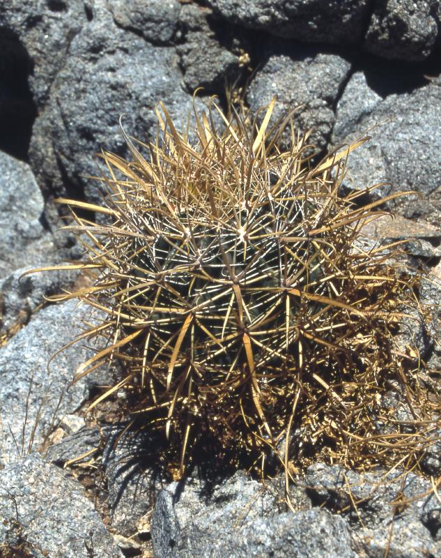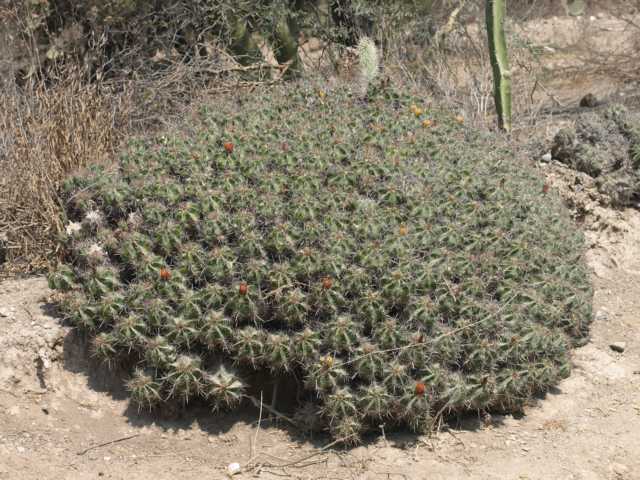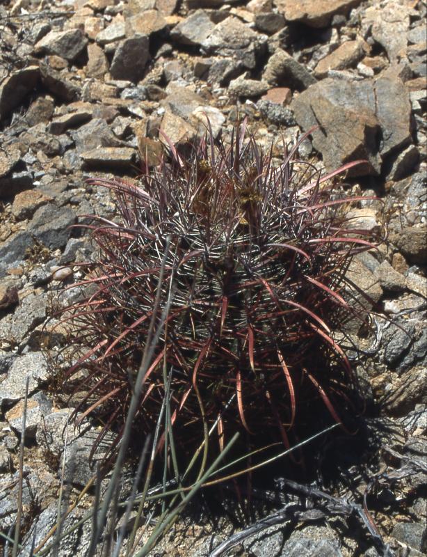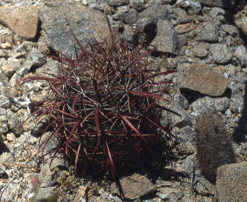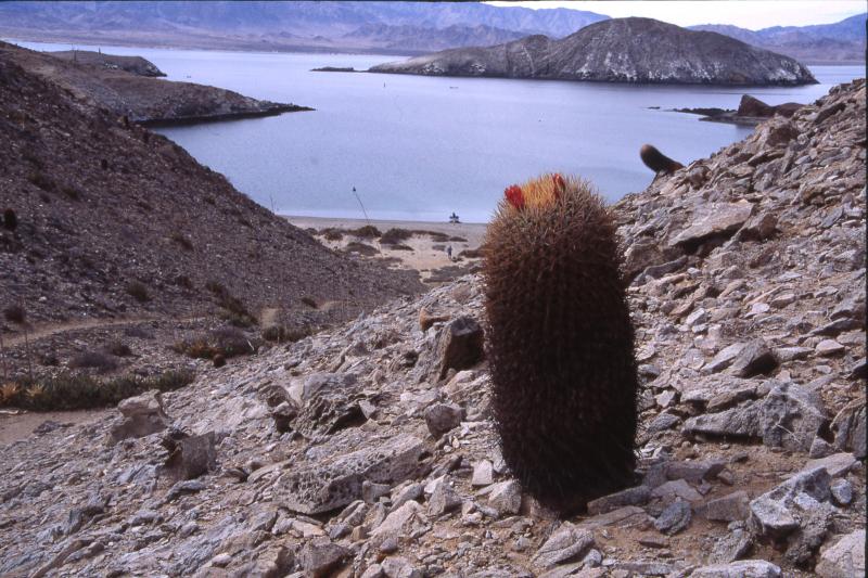 (Anbei: die große Insel im Hintergrund ist die Isla Angel de la Guarda - der Standort von Feroc. acanthodes var. johnstonianus.) Das Aussehen der "Gatesiis" ist recht unterschiedlich. Meistens kann man grau-rosa bedornte Pflanzen finden, aber es gibt auch rotdornige, die fast als Feroc. gracilis "durchgehen" könnten, gelblich bedornte oder auch hornfarben bis grau bedornte Pflanzen. ...