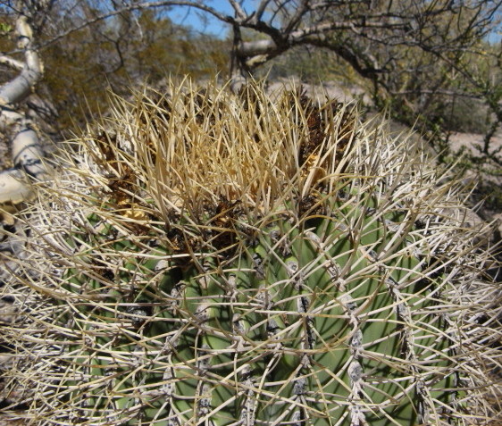 Die "Gatesiis" am angrenzenden Festland haben mehr gehakte Mitteldornen und zeigen im Scheitel grau bereifte Dornen, die später die graue Farbe verlieren und letztendlich vergrauen. Insgesamt sehen sie "stubbeliger" als die Pflanzen auf den Inseln aus. Manche Pflanzen erinnern im Aussehen auch an Feroc. peninsulae. Neben den Feros kann man man dort Pachycer. pringlei, Machaerocer. gummosus, Mammill. insularis, und finden.