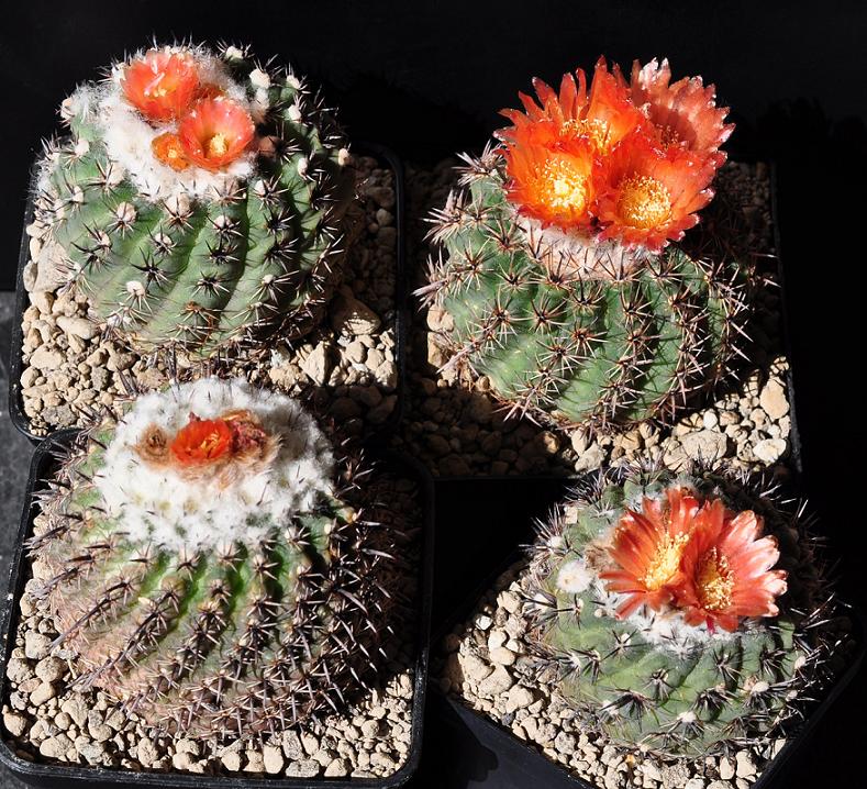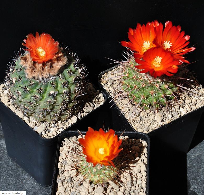 die Parodia mit der orangenen Blüten ist eine Parodia rubristaminea FK 83.