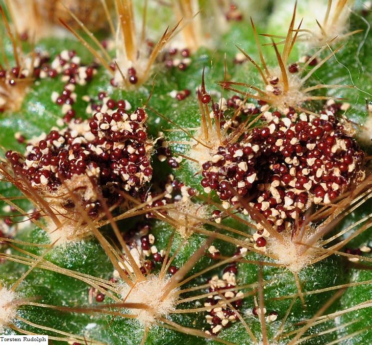 Es gibt auch keine Parodia in meiner Sammlung die so viel Samen produziert wie die Parodie purpureo-aurea FR 1134.
