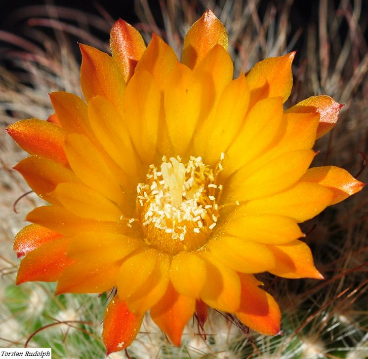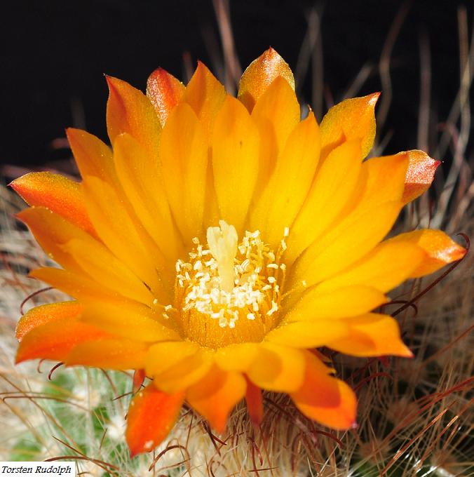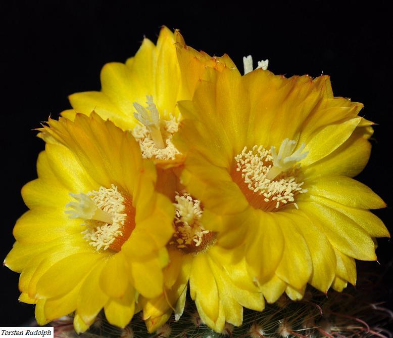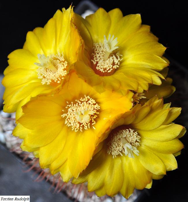 So früh wie noch nie: Meine Parodia chrysacanthion, die sonst doch "erst" in der Adventszeit aufblüht.