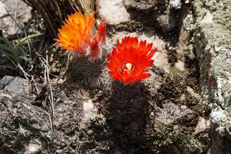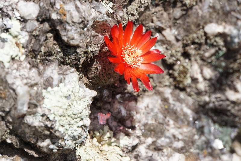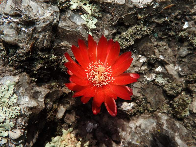 Anbei einige Fotos von heute Nachmittag. Die Aufnahmen entstanden an einer Felswand einige km nördlich Anquincila in der Sierra Ancasti. Die Pflanzen sind gerade mal 1-2 cm groß. Hunderte Pflanzen, viele in Blüte. Die Farbscala reicht von orange über rot bis fast karmin. Das erste Bild ist eine andere Population am Ortsrand von Anquincila mit deutlich größeren Pflanzen, alle orange blühend.