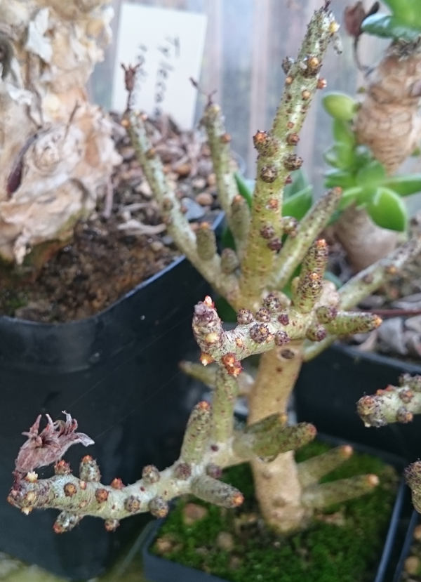Zwei meiner Tylecodon singularis haben wieder super ausgetrieben und bilden erste Ansätze für den Blütenstiel aus. Leider hat die dritte Pflanze nicht ausgetrieben, warum auch immer.