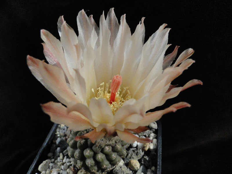 Heute war noch mal eine Thelocephala da die etwas halbschattig steht und vielleicht deshalb später dran ist als die Artgenossen von der Sonnenseite. Curvispina wartet noch auf den richtigen Zeitpunkt zum Blühen.