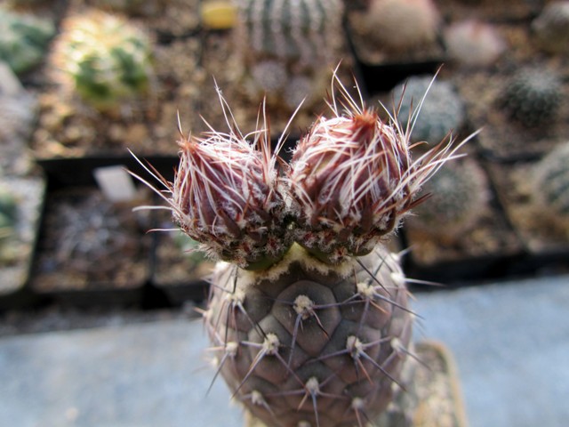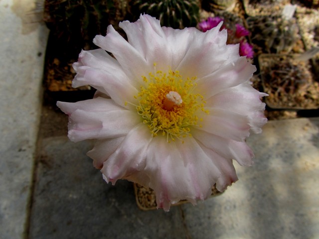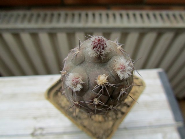 meine größere Pflanze von Tephrocactus geometricus ist nun auch zur Blüte gekommen, vobn der Farbe her etwas rosa mehr wie die kleineren.