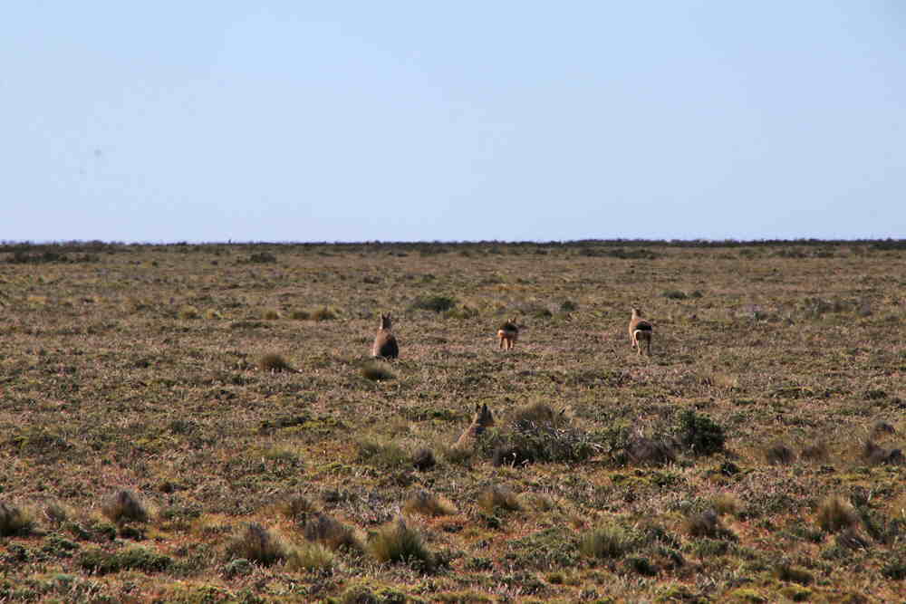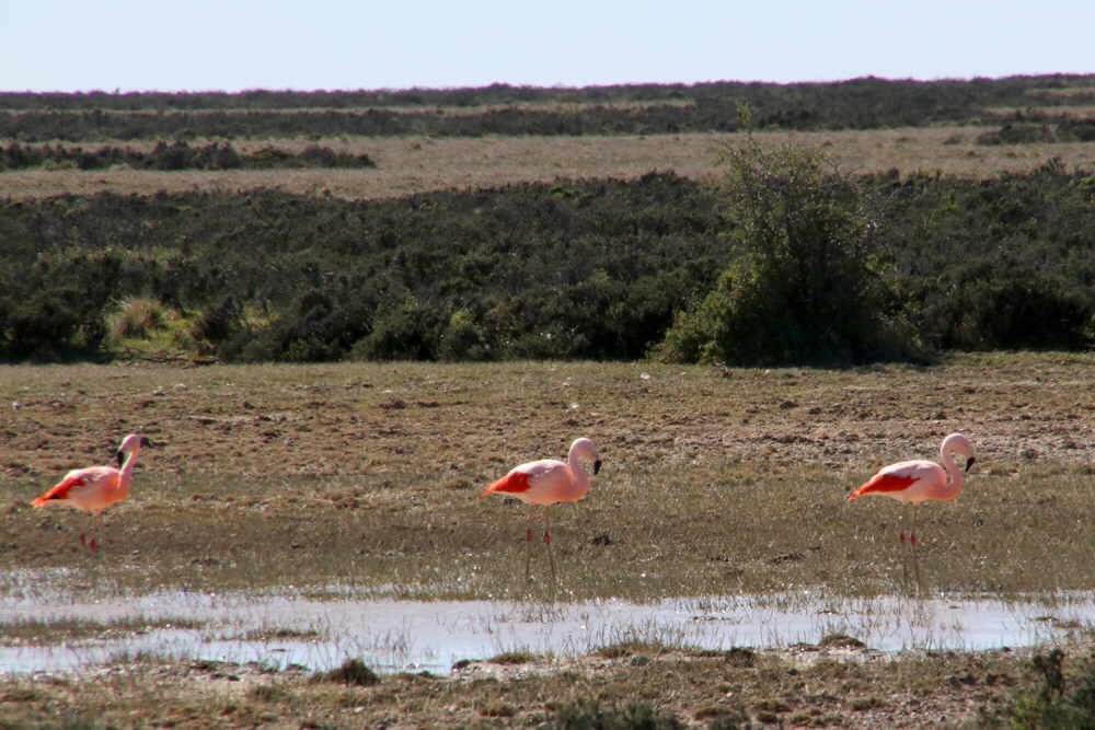 Es scheint so, dass es wieder ein Tag der Tiere wird. Erst sehen wir ziemlich nahe Flamingos Dann überraschen wir eine Mara-Familie.