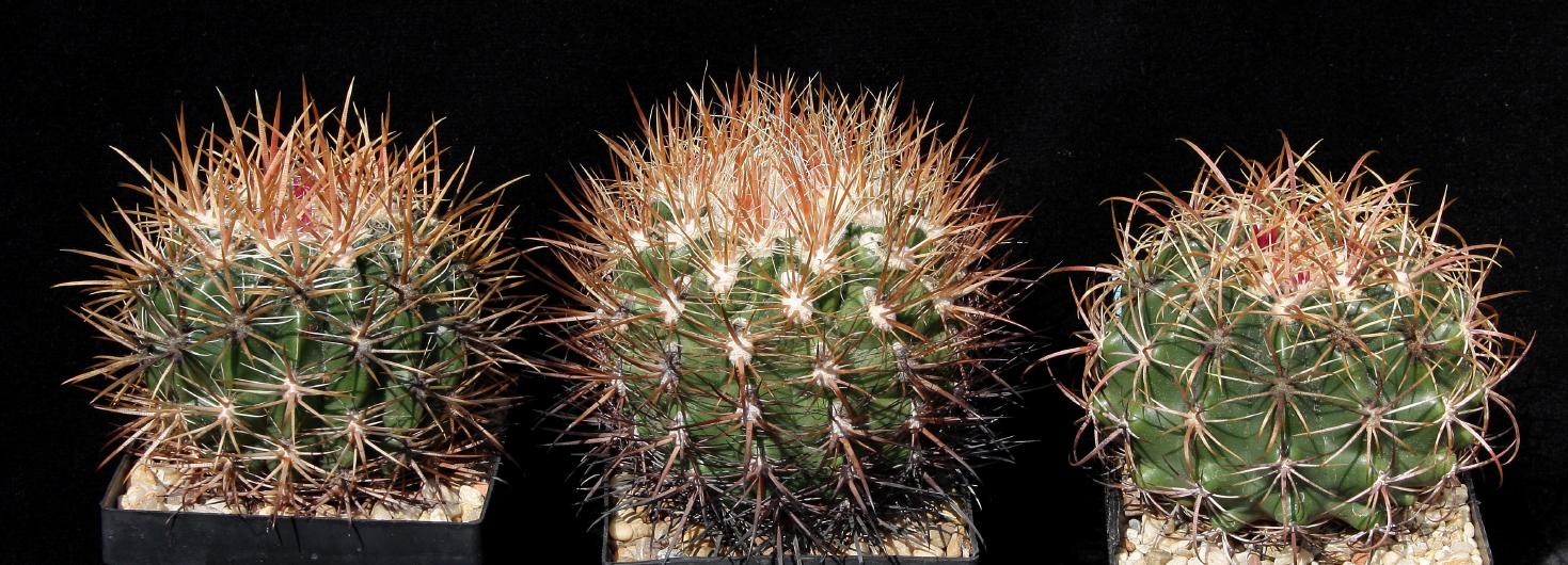 Hier habe ich noch ein Bild von 2016: Da sind: links San Carlos Canyon, Mitte var. littoralis / La Bufadora und rechts wieder der "richtige" Orcutti, hier allerdings mit etwas untypisch gebogenen Dornen.