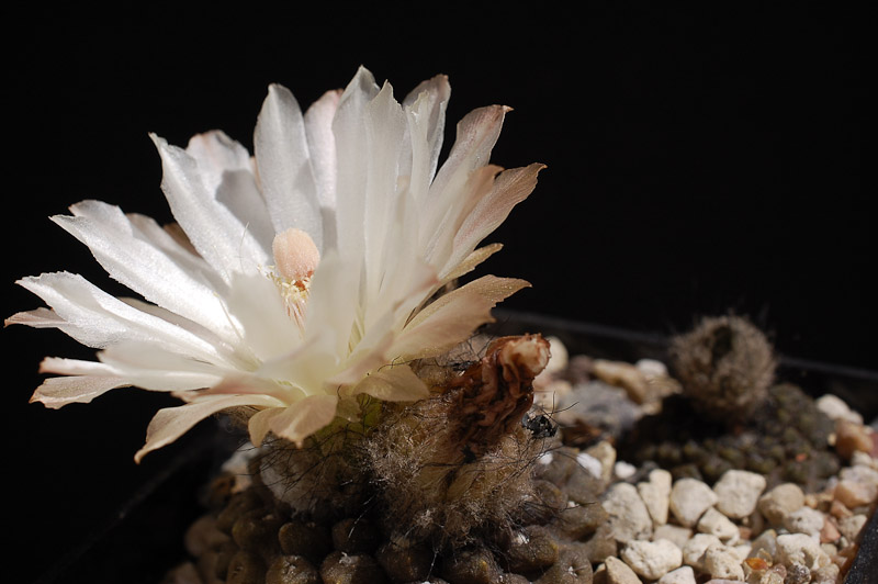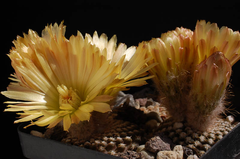 damit ich Jens als Einzelkämpfer in diesem Thread mal etwas zur Seite stehe, meine beiden P. bulbocalyx, 9 Jahre nach der Aussaat, blühen mal wieder (den Turbinicarpus im Hintergrund einfach ignorieren):
