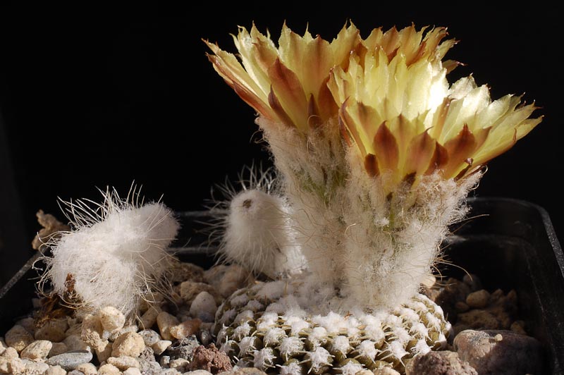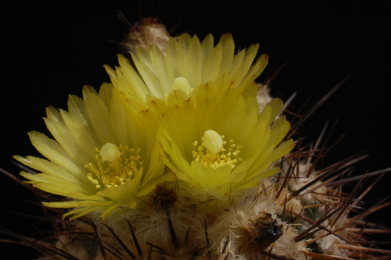 Alle sollten gelb oder gelblich blühen, etwas rötlich- bräunliche äussere Petalen haben und sehr viel Wolle und abstehende Borsten am Blütenkelch aufweisen. Sie kommen fast so nördlich vor wie E. esmeraldana.