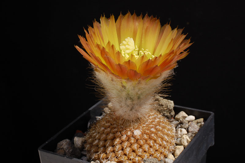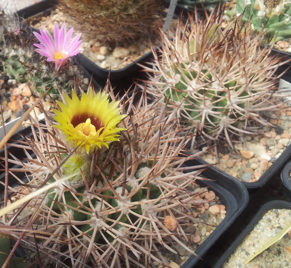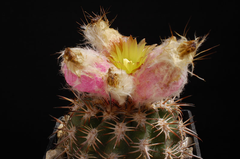 Die meisten Eriosyce machen jetzt bei der Hitze eine Wachstumspause . Als letzte habe ich E. crispa und Unterarten blühen gesehen.