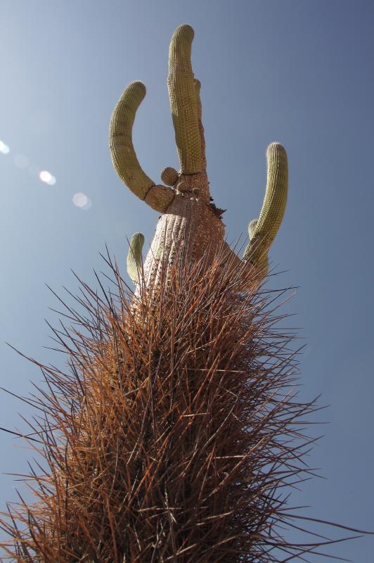 Browningia candelaris konnte ich - wie Konrad schon erwähnte - a) auf der Strecke Arica - Putre sehen. Sie kommt im Höhenbereich zwischen etwa 2200 und 2900 Metern vor. Eigentlich kann man garnicht vermeiden sie zu sehen, es sei denn man fährt im Dunkeln
