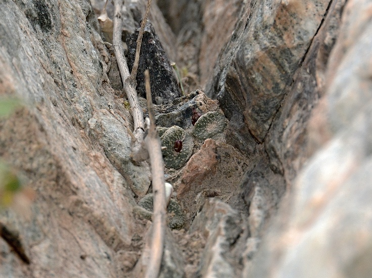 Blossfeldia liliputana...schon 3 mal habe ich sie hier in den Thermas de Fiambalá gesucht...erst am 13.11.2014 ist es mir gelungen....aber - das Ergebniss sind nur diese 3-4 Pflänzchen und dann noch eine wietere in einer anderen Ritze...