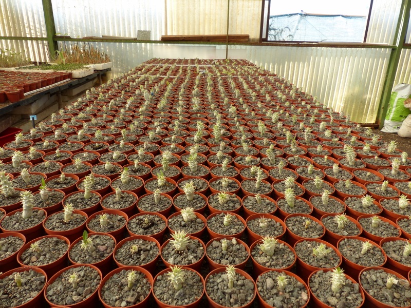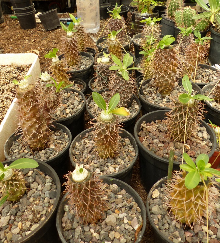 Gestern sah ich in der Gärtnerei meiner Freundin wieder Pfropfungen von Pachypodium brevicaule.